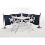 Barrière en toile bleue foncée rigide grâce aux barres insérées dans les coutures supérieures et inférieures de la toile.