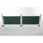 Barrière en toile verte idéale pour séparer les files d’attente ou compartimenter une salle en plusieurs sections.