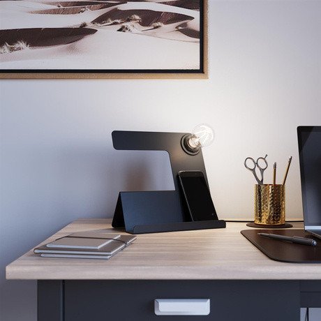 La lampe de table noire design Incline est particulièrement adaptée aux intérieurs futuristes et loft.