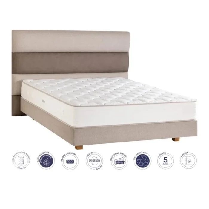 Associer le matelas ressorts ensachés renforcés Cristal 24cm avec un sommier tapissier de qualité supérieure.