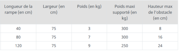 La rampe est très légère en matériaux durables et peut supporter de lourdes charges (300 kg max).
