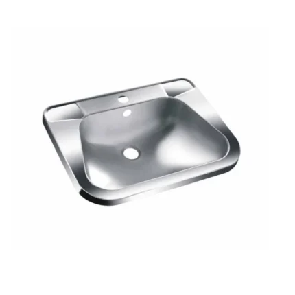 Lave-mains rectangulaire en acier inoxydable AISI 304. Longueur : 56 cm. 2 finitions : brillant ou satiné.