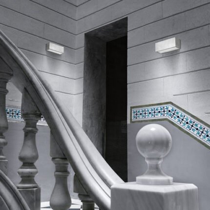 Applique murale blanche (LxHxP): 220 x 90 x 85 mm. IP44. Angle Optiques : FLOOD 82°. Garantie: 5 Ans. Livraison_Gratuite_Applique-murale_design