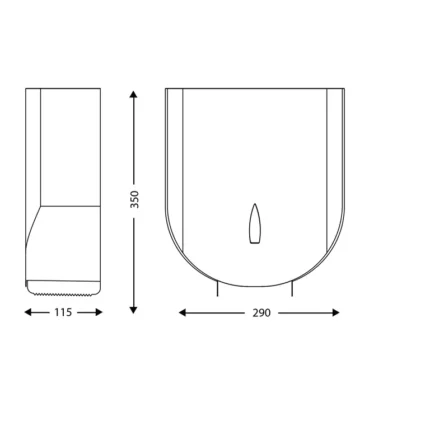 (HxLxP): 350 x 280 x 133mm. Adapté aux grands formats d’essuie mains. Fermeture sécurisée à clé.