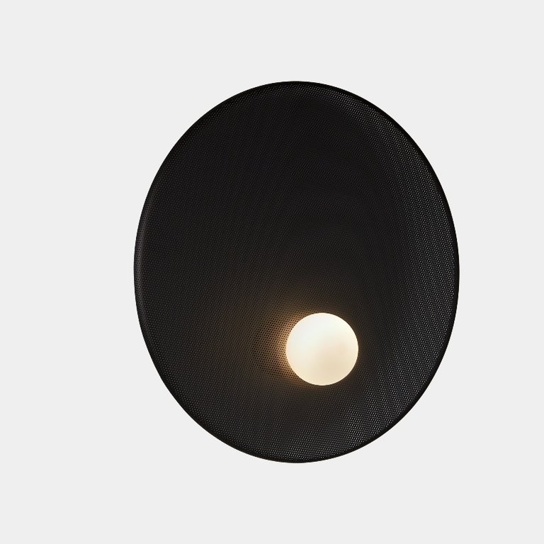 Applique murale architecturale (ØxP): 460 x 145 mm. Corps métallique à structure grillagée.