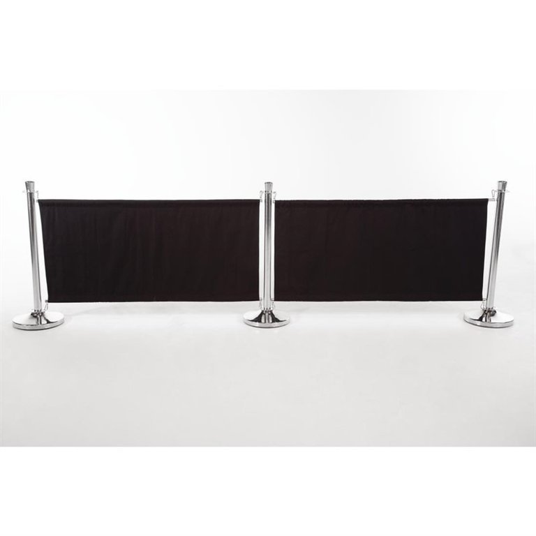 Barrière en toile noire idéale pour séparer les files d’attente ou compartimenter une salle en plusieurs sections.