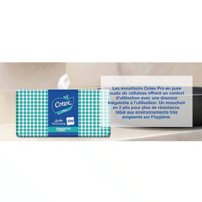 Les mouchoirs en pure ouate de cellulose Cotex pro offrent un confort d’utilisation avec une douceur inégalable à l’utilisation.