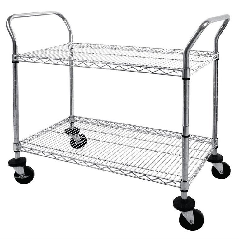 4 roues multidirectionnelles avec frein. Peut supporter 125 kg par étagère. Garantie 2ans.