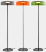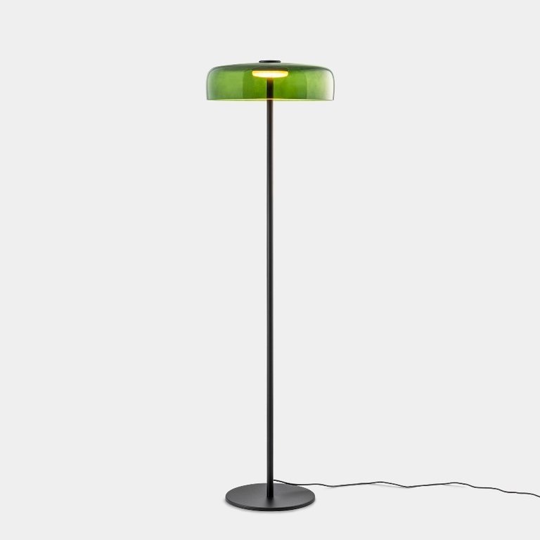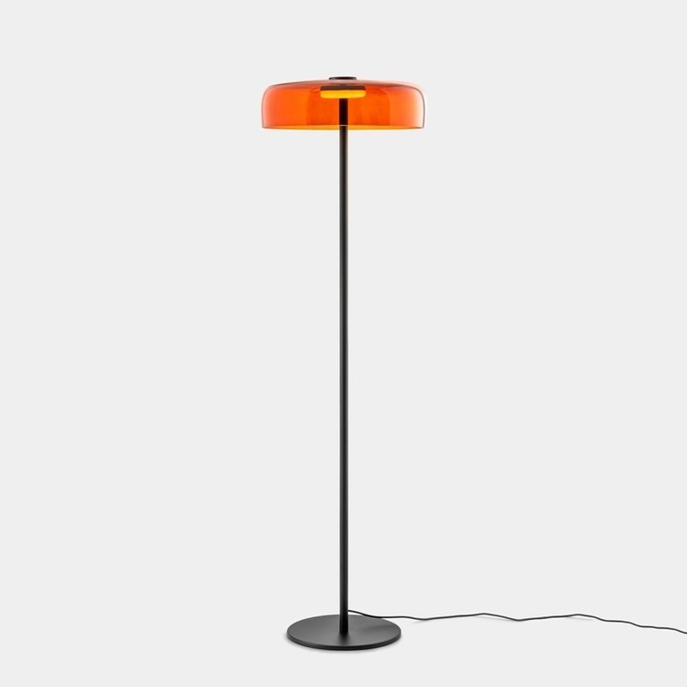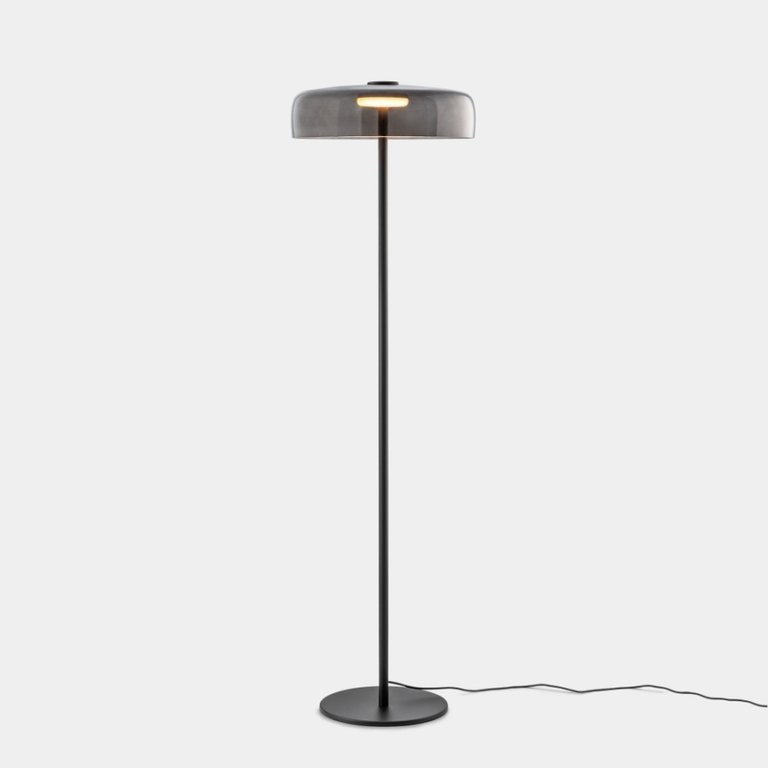 Lampadaire acier et verre (H x Ø) : 1450 x 420 mm. Diffuseur en verre. CCT : SW 2700-3000-4000K.
