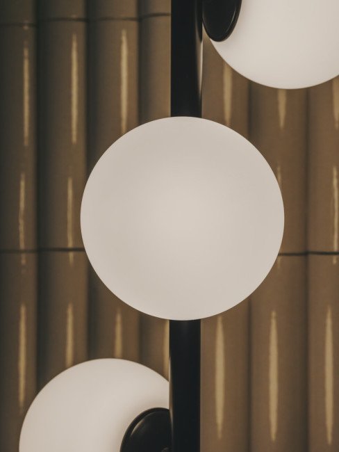 Lampadaire LED design (H x Ø base) : 1700 x 350 mm. Diffuseurs en verre Ø 120mm. CCT : SW 2700-3000-4000K.