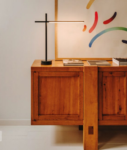 Luminaire d’intérieur design. Lampe à poser décorative LED. Lampe de chevet noire LED.
