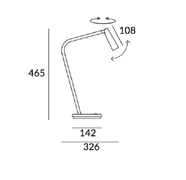 Lampe de table led Gamma (HxL): 465x326mm. Module optique peut tourner à 360º. Garantie: 5 Ans.