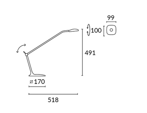 Lampe à poser Led Queen (H x L) : 491 x 518 mm. Le module optique peut facilement tourner à 360º. Garantie: 5 Ans.