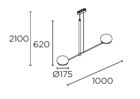 Lampe à suspension, dimensions structure (H x L) : 620 x 1000 mm. Garantie: 5 Ans.
