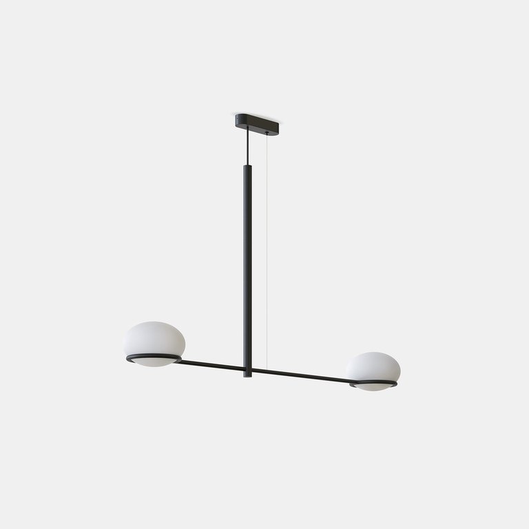 Elégant, compositionnel et asymétrique, la lampe suspendue Coco double s’adapte à n’importe quel espace en apportant une personnalité et une subtile sensation d’apesanteur.