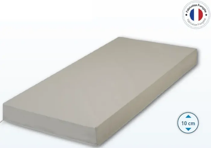 Matelas mousse déhoussable et imperméable de 10cm d’épaisseur.