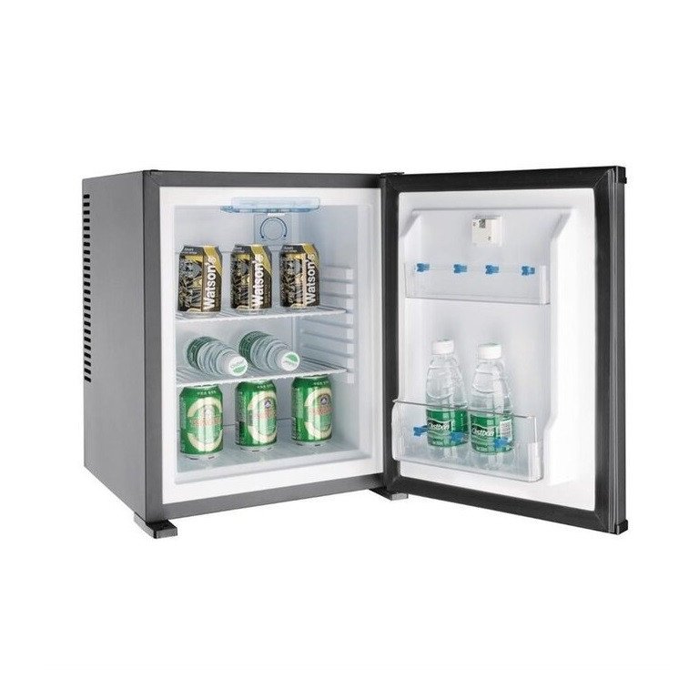 Minibar thermoélectrique (HxLxP) : 530 x 400 x 430 mm. Porte pleine réversible et verrouillable.