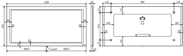 Dim. miroir triga (HxL): 60x120cm.