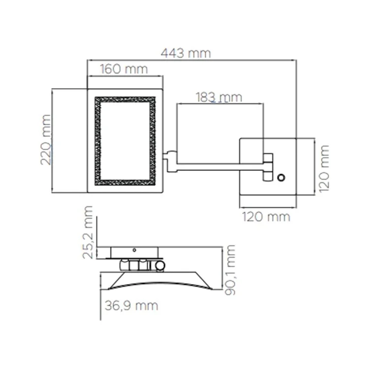- Dimensions du miroir déplié (H x L x P) : 220 x 443 x 90,1 mm.