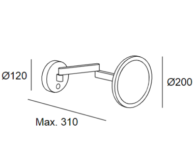 Miroir led salle de bain IP44 (ØxPmax): 20x31cm. Orientation: 180°. Inclinaison: 150°.