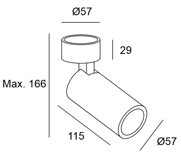 (Hmax x L x P x Ø): 166 x 115 x 57 x 57mm. Source lumineuse orientable. Smart Compatible.