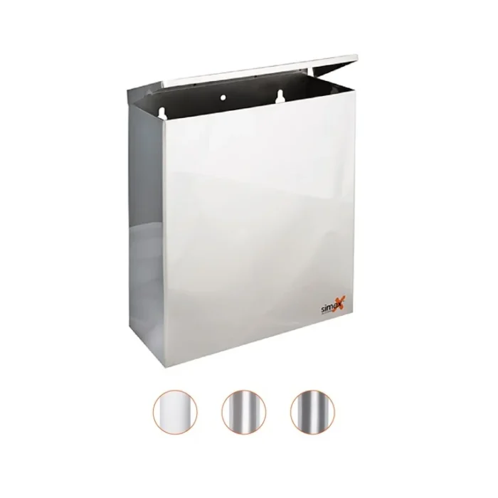 (H x L x P): 290 x 240 x 108mm. Poubelle murale anticorrosion. Finitions: Blanc, brillant ou satiné.