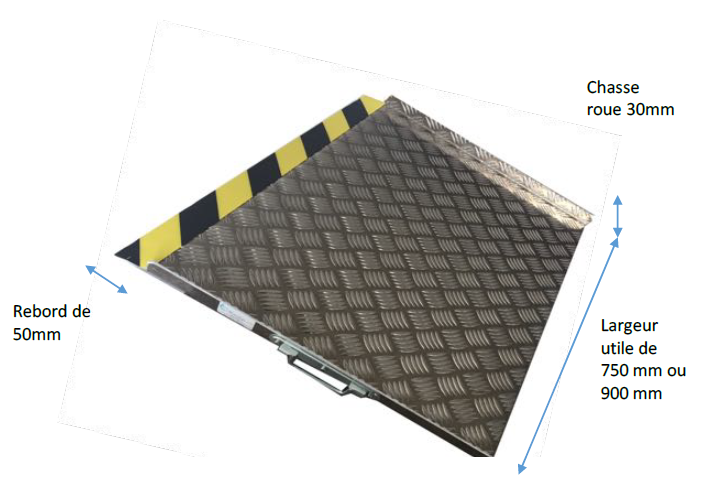 Dimensions (Largeur x longueur ) disponibles de la rampe de seuil PMR en aluminium Signal :