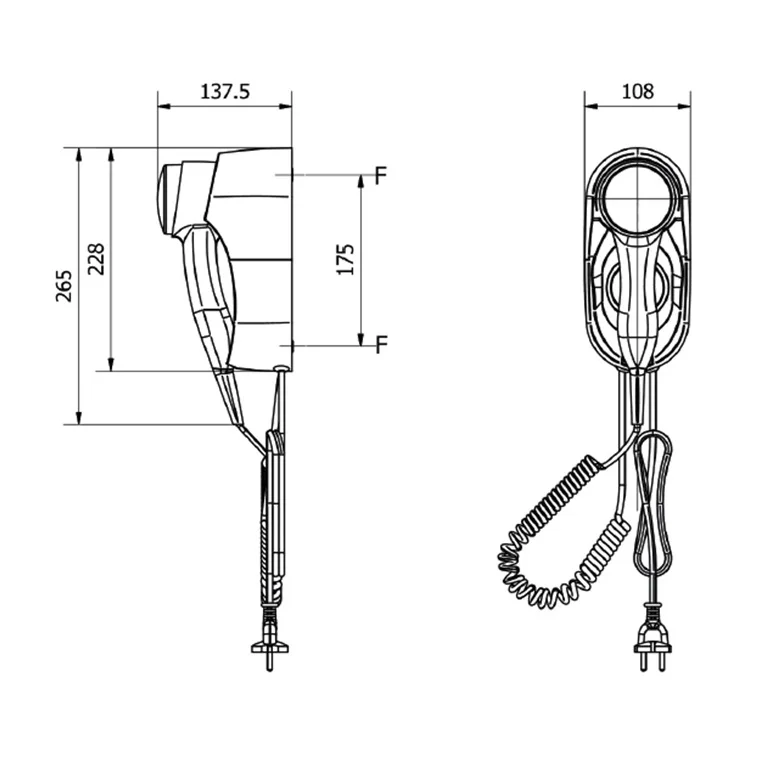 Le sèche-cheveux support mural est destiné à un usage professionnel.