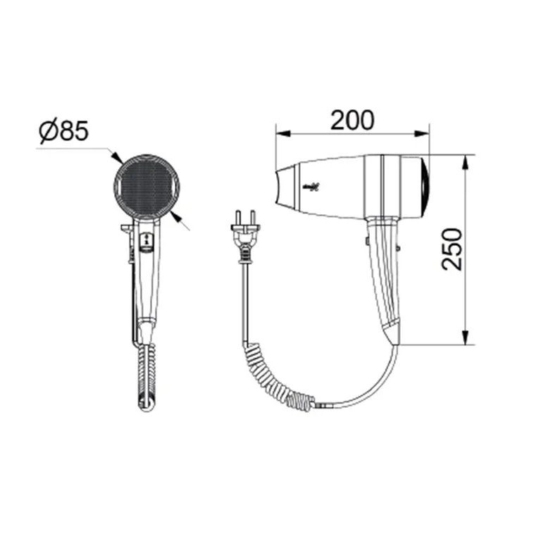 Sèche cheveux mural avec flexible hôtel