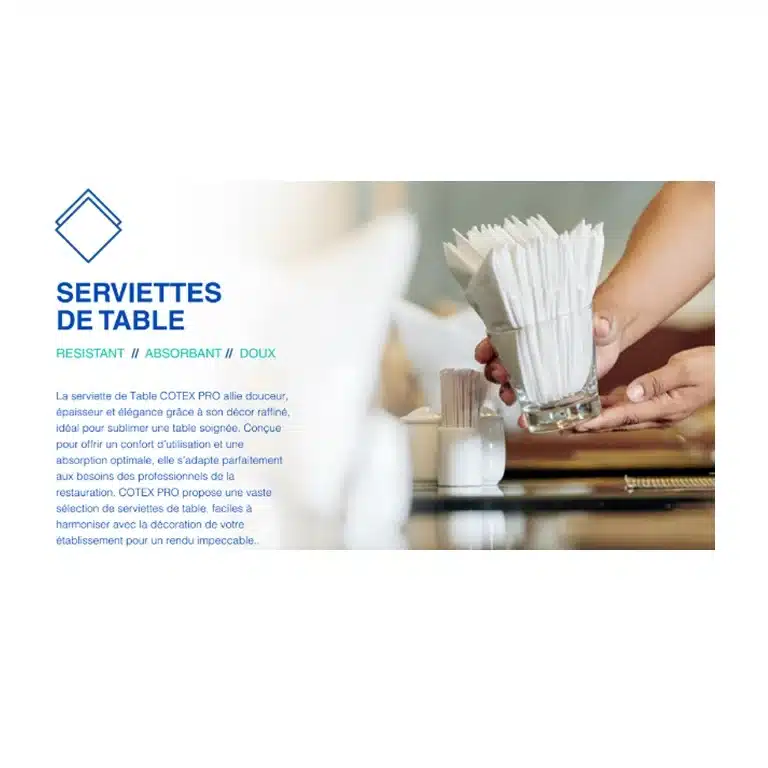 Serviette de table en pure ouate de cellulose Cotex pro avec micro gaufrage en 1 pli.