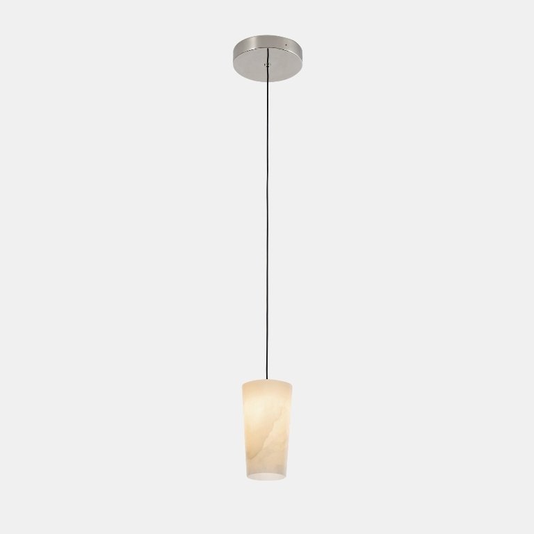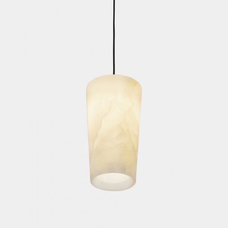 Lampe à suspension tulipe en albâtre (H x Ø) : 160 x 84mm. Longueur totale max : 250cm.